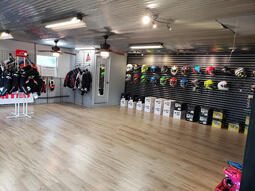 Hometown Motorsports shop focusing on motorcycle sales and the equipment to keep you safe.