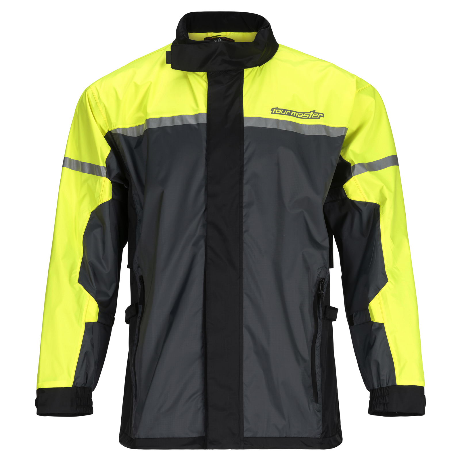 Stay dry with the Sentry Rain Jacket. This waterproof, breathable jacket features a ripstop nylon shell, an under-the-helmet hood, and adjustable straps for a secure fit. Extra pockets and underarm vents add convenience and comfort.